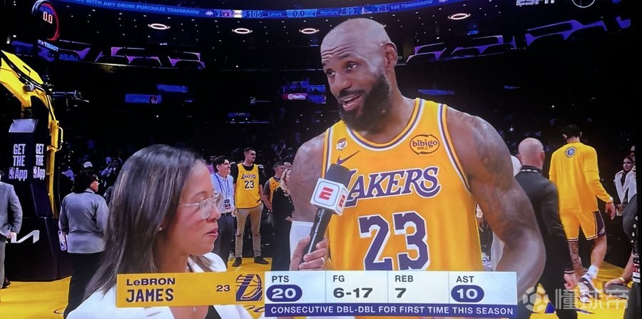 赛后在更衣室里,詹姆斯谈及库里的缺阵时说道:“我看向场边还是会下意识寻找斯蒂芬,但你知道这支球队训练有素,非常有凝聚力。他们会不断跑动,整晚都在考验你的防守,让你打得很不舒服。”