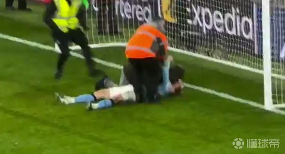其实我只想安静地躺会儿,在昨日比赛最后时刻哈兰德被一球迷紧抱