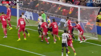 第36分钟,戈登禁区右路低射远角破门,纽卡1-0利物浦