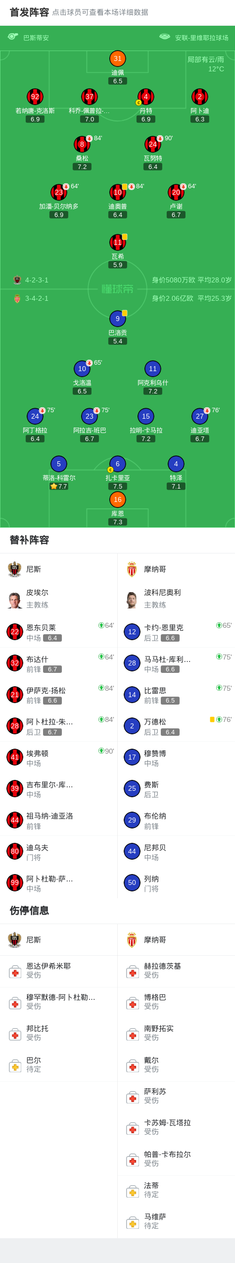 第84分钟,尼斯换人,朱马-巴、伊萨克-扬松登场,换下桑松、迪奥普