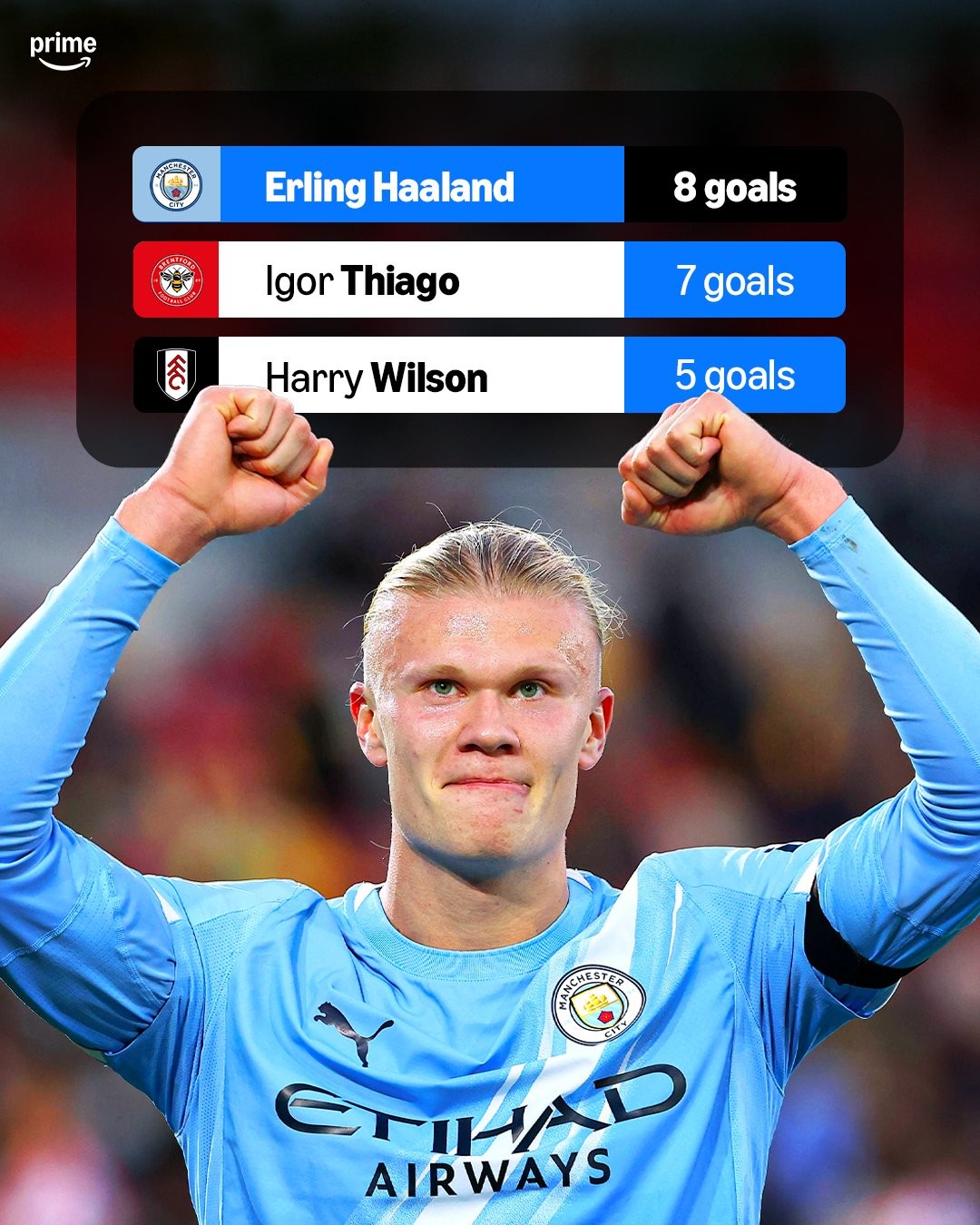 根据Prime Video Sport的统计,哈兰德本赛季至今已经8次在英超比赛中打进制胜球,同期在这项数据上他位列英超所有球员的第一位,领先于布伦特福德的前锋伊戈尔-蒂亚戈(7球)以及富勒姆的边锋哈里-威尔逊(5球)。